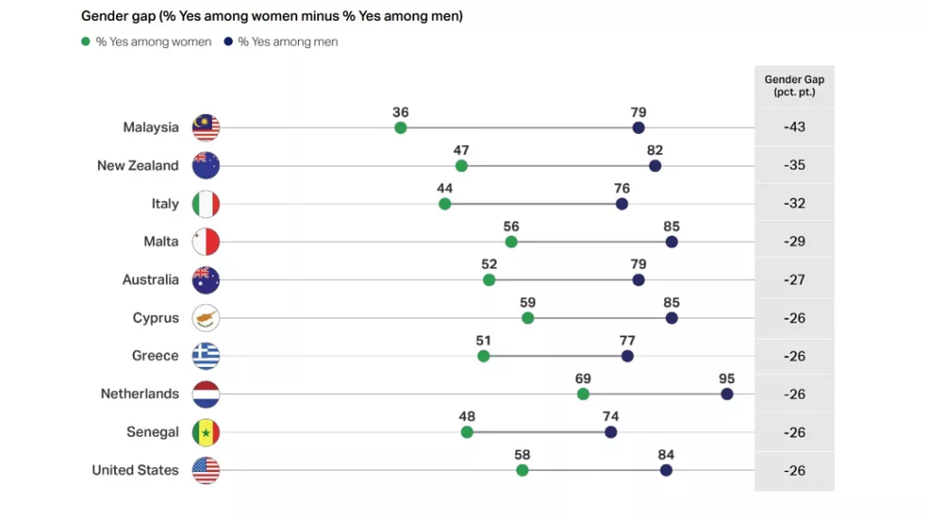 Správa Gallup tiež poukazuje na veľký rozdiel medzi pohlaviami: